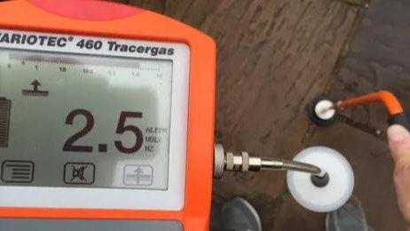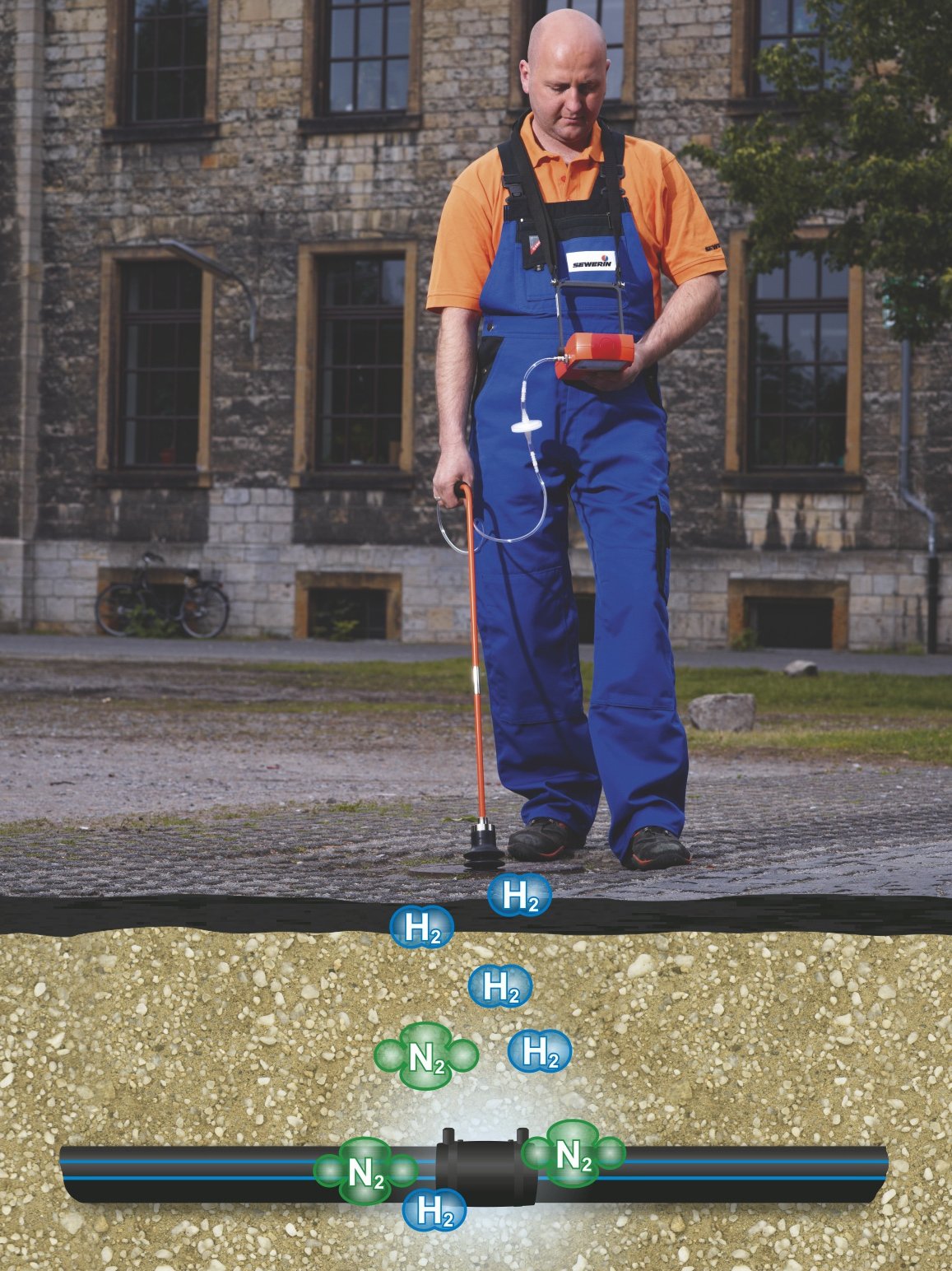 The tracer gas contains hydrogen, which is the lightest and smallest molecule in the atmosphere, which will exit at the leak point and make its way to the surface where it is detected by the highly sensitive Variotec 460 gas detector.