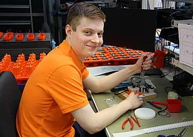Tim Hochsprung ist seit dem 01.09.2023 Auszubildender als Elektroniker für Geräte und Systeme im ersten Lehrjahr. Eigentlich war Tim sich bis kurz vor seinen Abiturprüfungen noch nicht ganz sicher, wohin ihn sein Weg führen könnte. Sollte er studieren oder nicht vielleicht doch lieber eine Ausbildung machen? Da der 20-jährige schon immer viel Interesse an technischen Dingen zeigte, schlug ihm sein Onkel – ein echtes SEWERIN-Urgestein – vor, sich über den Beruf des Elektronikers zu informieren. Gut für uns, denn Tim fand den Beruf interessant, bewarb sich bei SEWERIN und passt wunderbar ins Team.